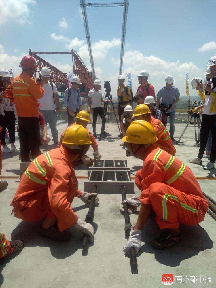 3月15日,坭洲水道橋首片67號鋼箱梁順利吊裝。王曉佳介紹,“吊梁期間,我們每天6點前就起床了,天剛亮就乘坐施工電梯爬貓道進行吊梁作業(yè)。”在大家的共同努力下,鋼箱梁的吊裝數(shù)量每天穩(wěn)步保持在3片左右,最高紀錄單日吊裝6片。